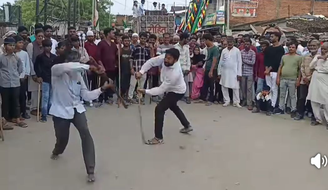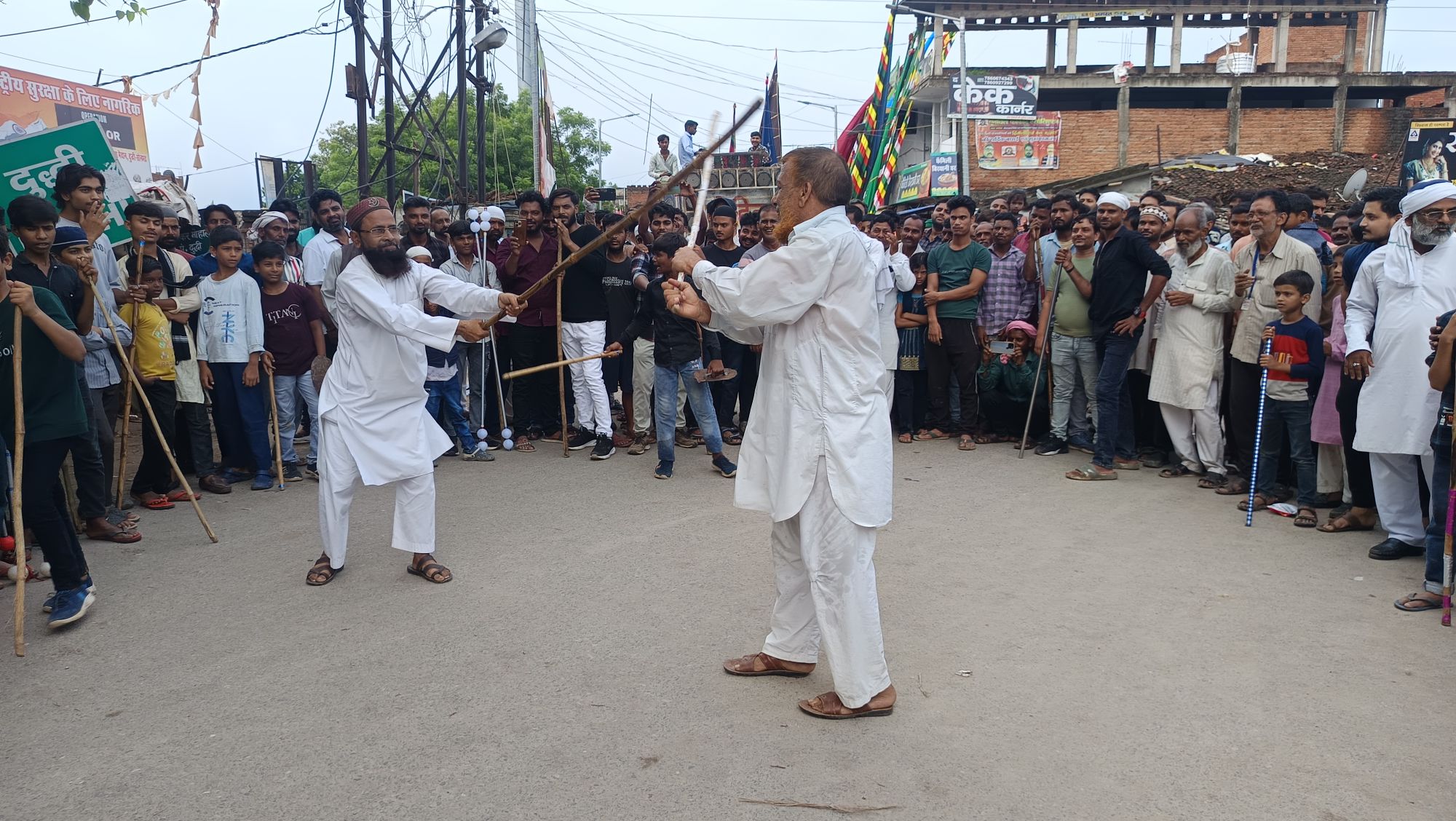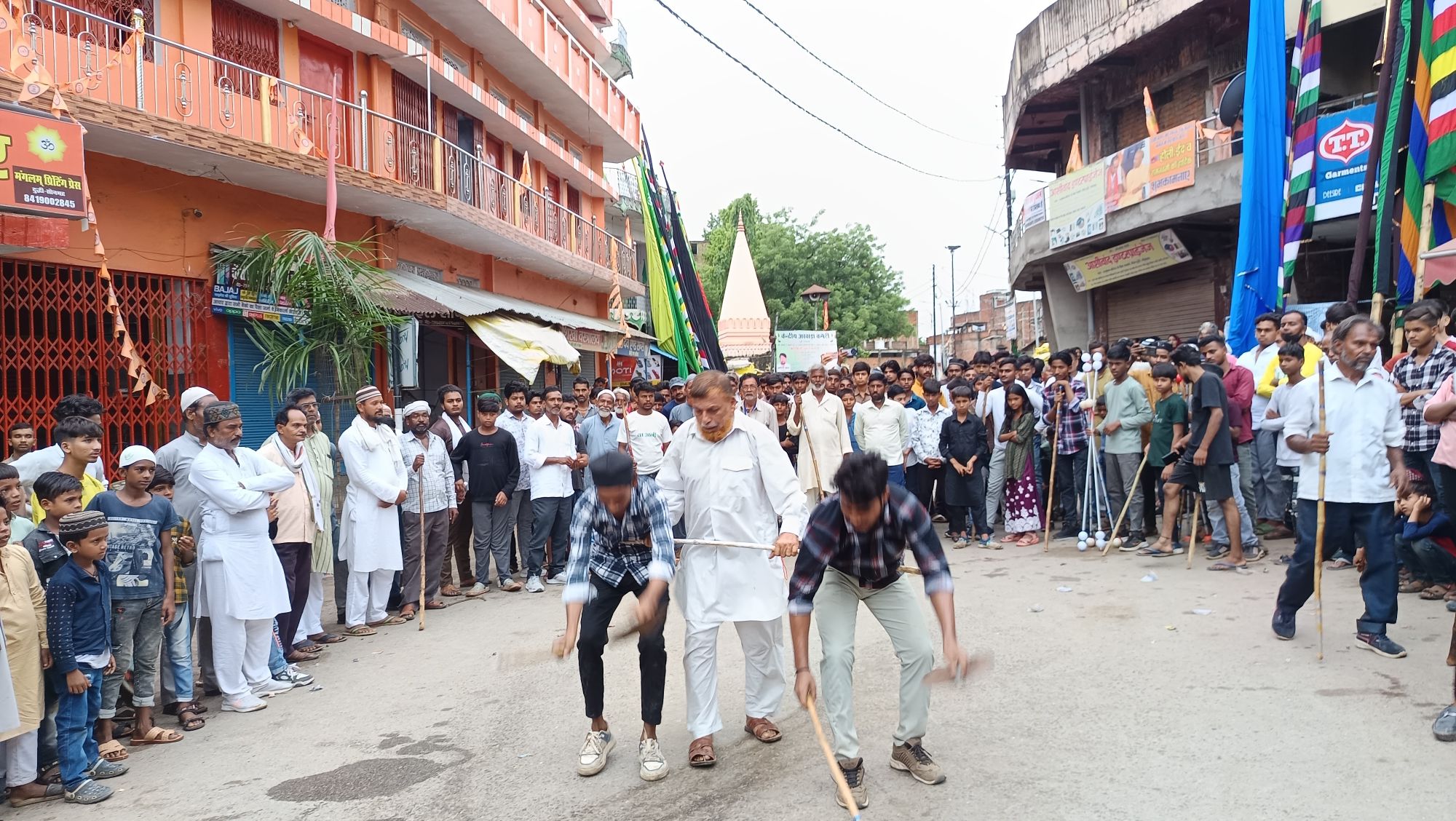 मुस्लिम समुदाय ने शासन के निर्देशों का किया पालन किसी भी प्रकार का कोई अस्त्र शस्त्र नही लाया लाठी डंडो से हैरत अंगेज वाली खेल का प्रदर्शन खिलाड़ी दिखाते रहें खेल।