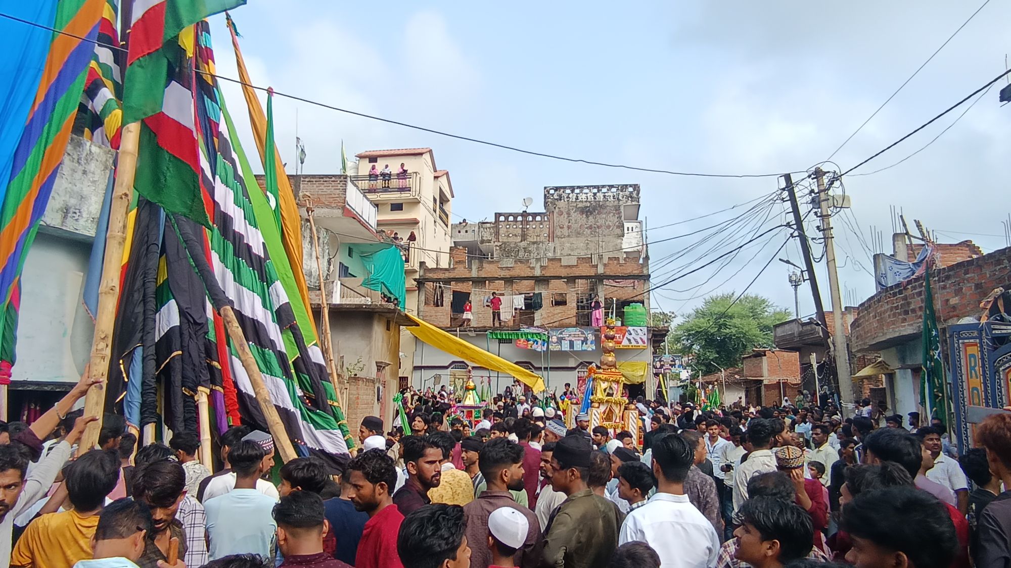 केंद्रीय अखाड़ा कमेटी के नव निर्वाचित सदर आलिजनाब फत्तेह मोहम्मद मन्नू खान के अगुवाई में जुलूस निकाला गया,सभी जुलूस शाह चौक पर साथ होकर शहीदाने कर्बला वालों को याद कर हज़रत इमाम हुसैन रजि0 के याद कर फ़ातिहा पढ़ी गई। इसके बाद मंदिर के पांच फीट वाली गली से ताज़िया निशान अलम को प्रशासन के मौजूदगी में जुलूस निकलने के बाद अपने अपने चौकों पर प्रस्थान किए लोग।