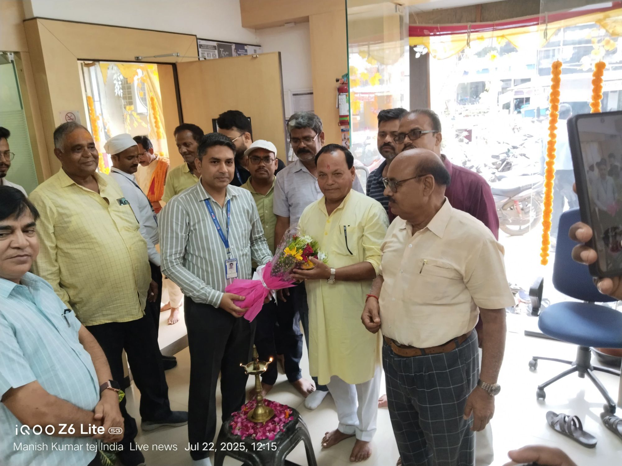 इससे पूर्व शाखा प्रबंधक ने नगरपंचायत अध्यक्ष कमलेश मोहन का अंगवस्त्रम व गुलदस्ता भेंट कर सम्मानित किया ।