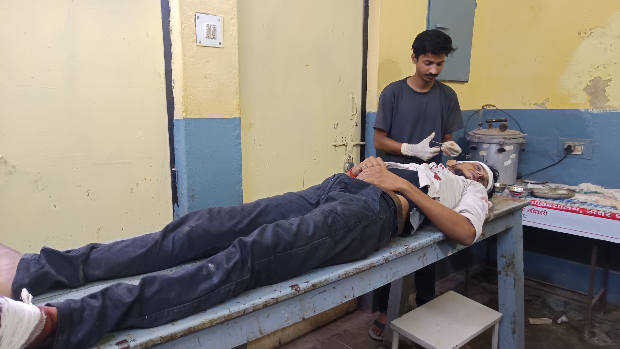 बाया पैर फ्रैक्चर हो गया ।हादसे के वक्त वह बाइक पर ही सवार थे और बाइक खड़ी थी ।