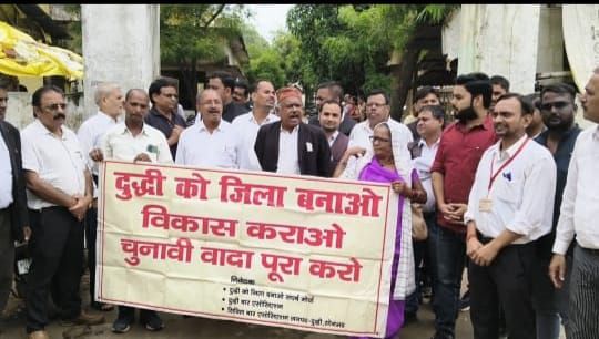 दुद्धी बार एसोसिएशन संघ के अध्यक्ष प्रेमचंद यादव और सिविल बार संघ के अध्यक्ष प्रभु सिंह कुशवाहा ने संयुक्त रूप से कहा कि दुद्धी जिला बनने के सभी मानक को पूरा करता है और सरकार को भारी मात्रा में रेवेन्यू देता है। इसके बावजूद दुद्धी को जिला नहीं बनाया गया है। उन्होंने कहा कि दुद्धी को जिला बनाने के लिए 30 घंटे का भूख हड़ताल और 20 किलोमीटर पैदल यात्रा भी किया जा चुका है।