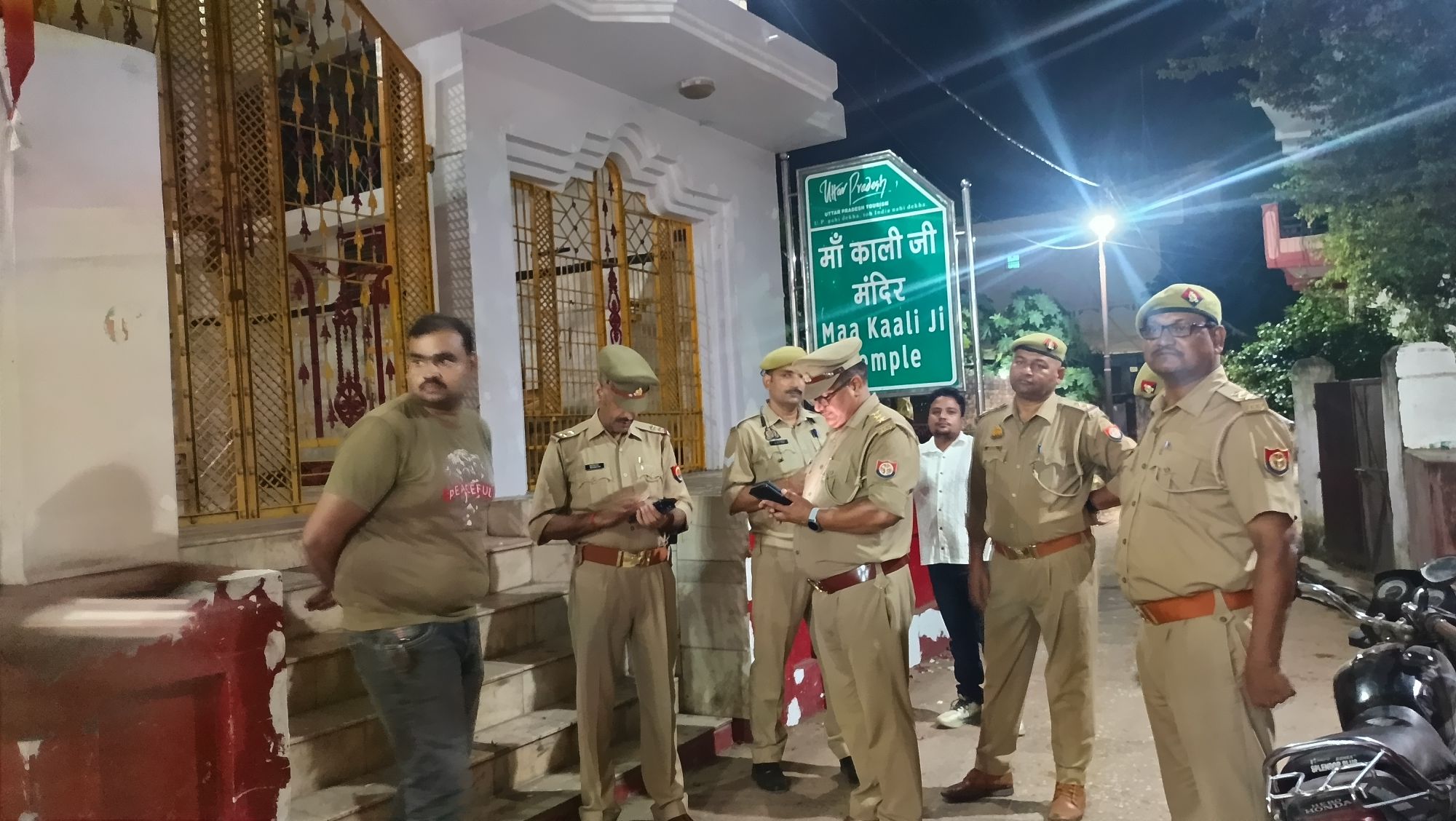 दुद्धी कोतवाली के नवागत कोतवाल स्वतन्त्र कुमार सिंह ने दुर्गा पूजा स्थलों का निरीक्षण किया।