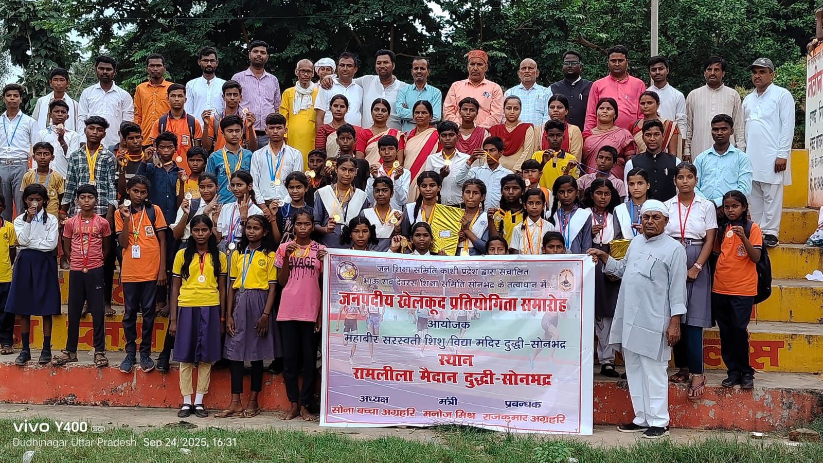 दुद्धी/सोनभद्र।(प्रमोद कुमार) स्थानीय रामलीला (टीसीडी) खेल मैदान पर जन शिक्षा समिति काशी प्रांत के तत्वावधान में संचालित भावराव देवरस शिक्षा समिति, सोनभद्र द्वारा एकदिवसीय जनपद स्तरीय खेलकूद प्रतियोगिता का आयोजन किया गया। इस प्रतियोगिता का संचालन महावीर सरस्वती शिशु मंदिर एवं विद्या मंदिर के संयुक्त तत्वावधान में किया गया। कार्यक्रम सुबह 10 बजे से शाम 5 बजे तक चला।