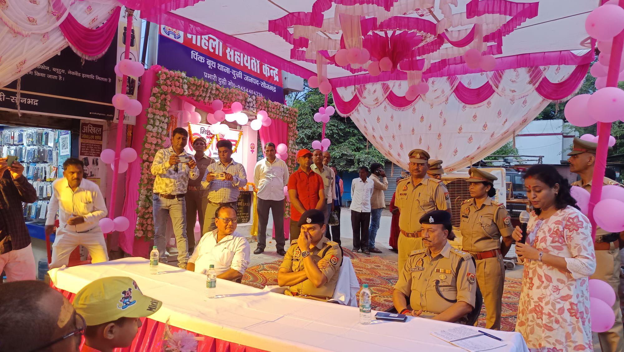 दुद्धी/सोनभद्र।(प्रमोद कुमार)दुद्धी नगर के म्योरपुर तिराहे पर मिशन शक्ति फेज पंचम के अंतर्गत नारी सुरक्षा, नारी स्वावलंबन एवं नारी सशक्तिकरण के अंतर्गत बुधवार की शाम महिला सहायता केंद्र के अंतर्गत पिंक बूथ थाना दुद्धी का सोनभद्र पुलिस कप्तान अभिषेक वर्मा ने फीता काटकर उद्घाटन करते हुए शिलापट का अनावरण किया।