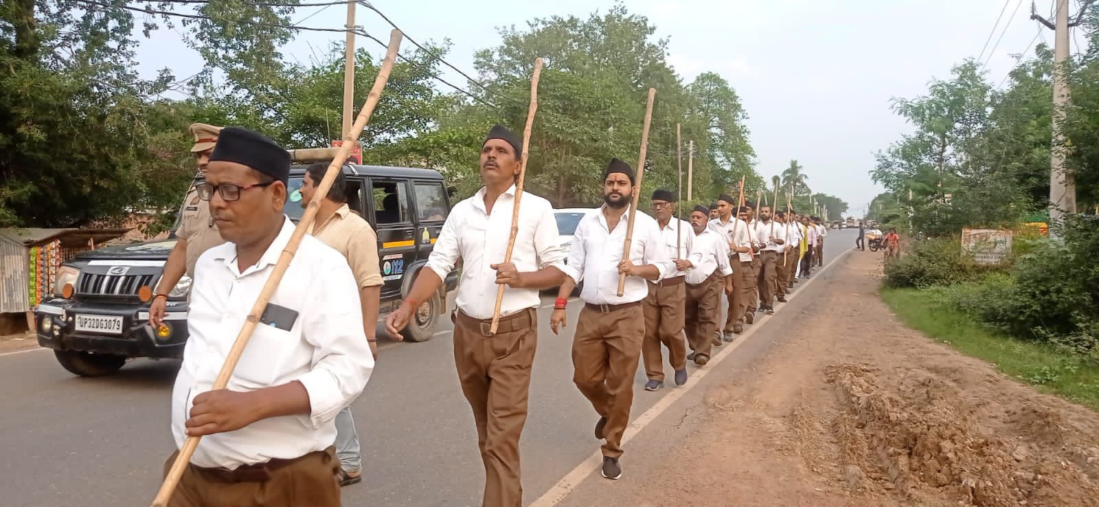 राष्ट्रीय स्वयंसेवक संघ ने पूर्ण गणवेश में अनुशासित तरीके से किया पथ संचलन