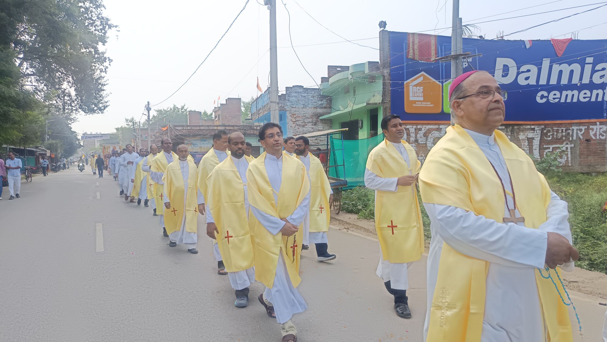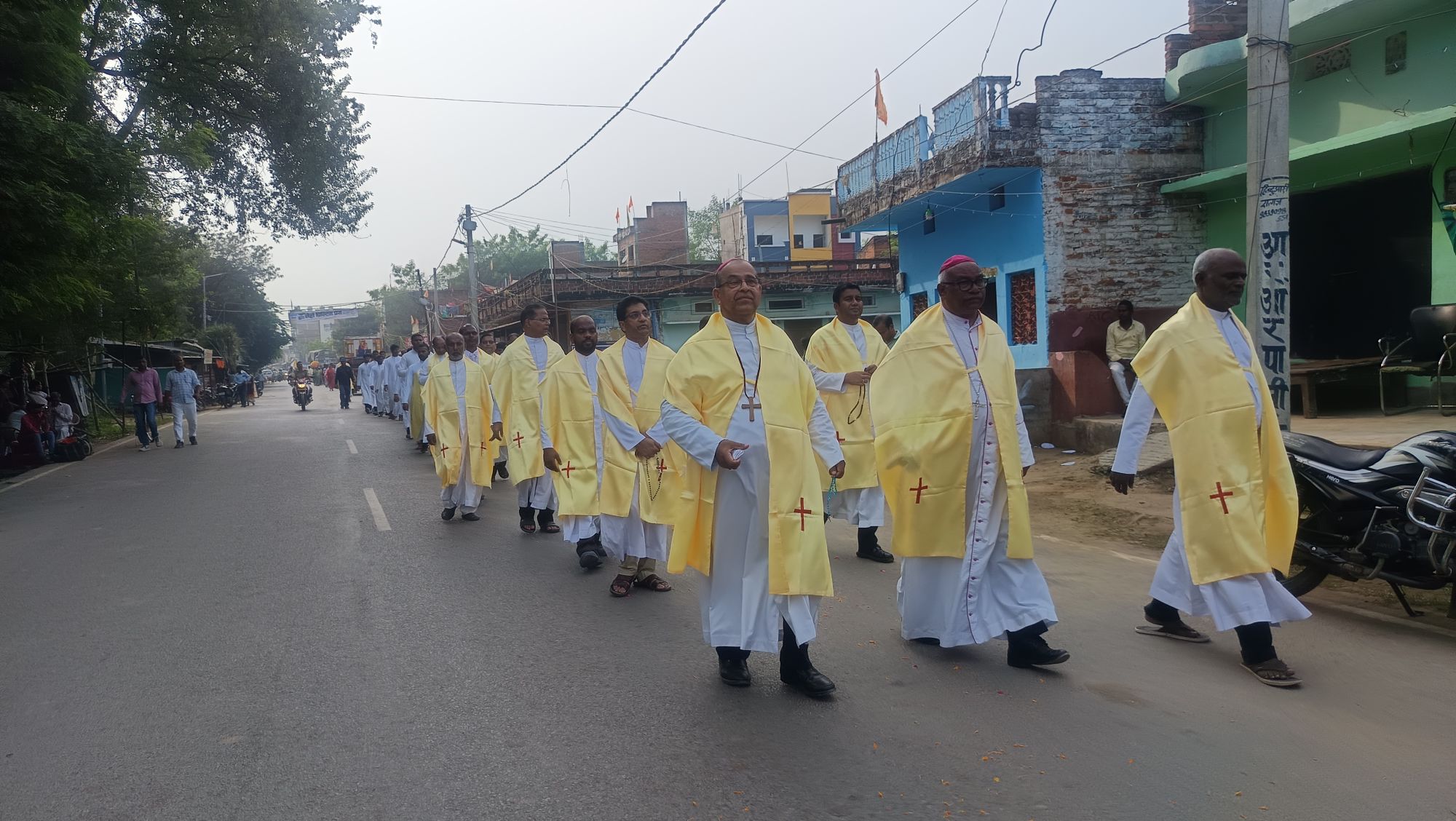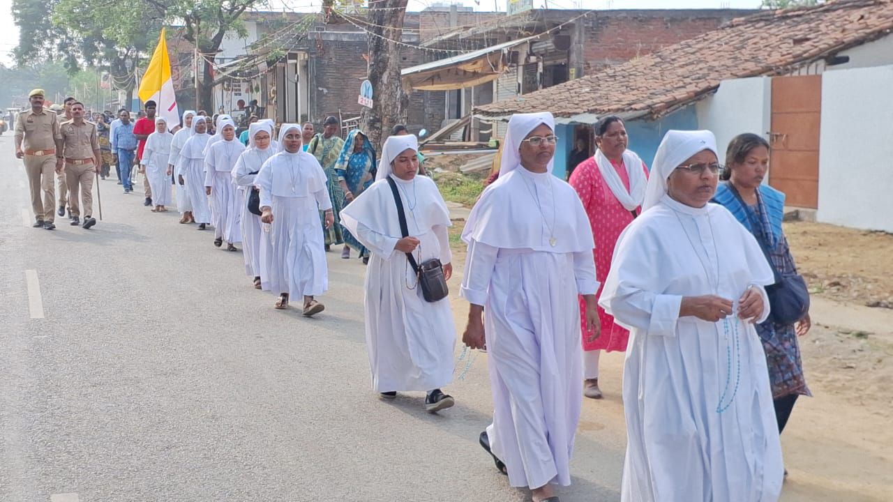 दुद्धी/सोनभद्र।(प्रमोद कुमार) रविवार को स्थानीय नगर के रेलवे स्टेशन रोड पर स्थित कृपाओं की माता चर्च में चल रहे तीन दिवसीय आध्यात्मिक करिश्माई साधना व वार्षिक पल्ली भव्य शोभायात्रा यात्रा के साथ रविवार को सम्पन्न हुआ। शोभायात्रा फादर टाइट्स लोबो की अगुवाई में निकली।