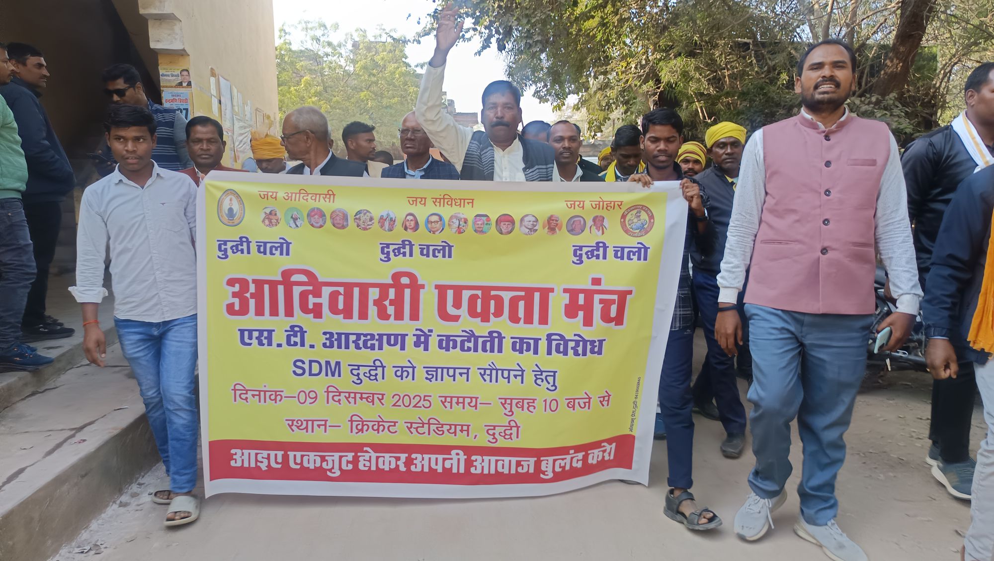 आदिवासियों ने एस.टी.आरक्षण को लेकर दुद्धी तहसील मुख्यालय पर समाजवादी पार्टी के बघाडू जिला पंचायत सदस्य जुबेर आलम की अध्यक्षता में सैकड़ो आदिवासियों के साथ जुलूस निकाल विरोध प्रदर्शन किया था।